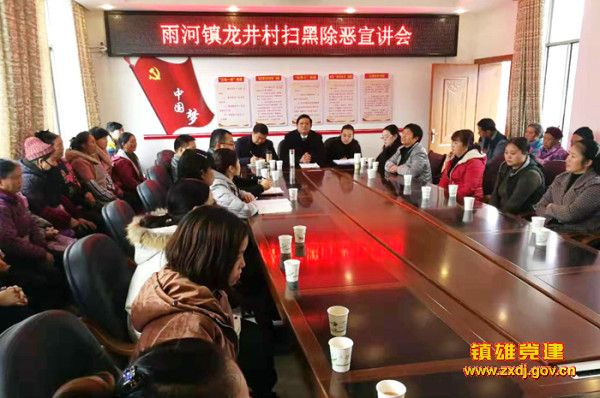會(huì)議結(jié)合龍井村在脫貧攻堅(jiān)、易地搬遷、土地流轉(zhuǎn)、人居環(huán)境提升、美麗鄉(xiāng)村建設(shè)、新農(nóng)合新農(nóng)保識(shí)別辦理,以及在基層政權(quán)建設(shè)過程中是否存在群眾反映強(qiáng)烈的突出問題,首先進(jìn)行全方位的自我“診斷體檢”,乘掃黑除惡的東風(fēng)解決長期以來存在的、想解決而沒有得到解決的痼疾問題。具體行動(dòng)措施為宣傳發(fā)動(dòng)、入戶調(diào)查收集材料、歸檔上報(bào)研判、采取措施等四個(gè)階段。2月24日起,云天化集團(tuán)駐村扶貧工作隊(duì)和村干部分別在魯家溝、穆家灣等13個(gè)村民小組張貼宣傳標(biāo)語和海報(bào),向每一戶村民發(fā)放一份《致鎮(zhèn)雄縣人民群眾關(guān)于掃黑除惡專項(xiàng)斗爭的一封信》,召開群眾大會(huì)宣傳掃黑除惡專項(xiàng)斗爭的重要性、必要性。本次掃黑除惡專項(xiàng)斗爭打擊的重點(diǎn)是聚焦涉黑涉惡問題突出的重點(diǎn)地區(qū)、重點(diǎn)行業(yè)、重點(diǎn)領(lǐng)域,把打擊鋒芒始終對準(zhǔn)群眾反映最強(qiáng)烈、最深惡痛絕的各類黑惡勢力違法犯罪。