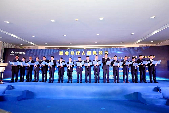 2019年1月10日,云天化股份年度工作會(huì)議上,職業(yè)經(jīng)理人代表舉行宣誓儀式